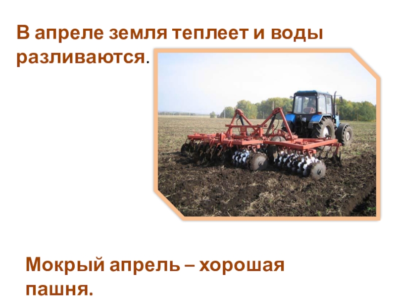 В апреле земля теплеет и воды разливаются.Мокрый апрель – хорошая пашня.