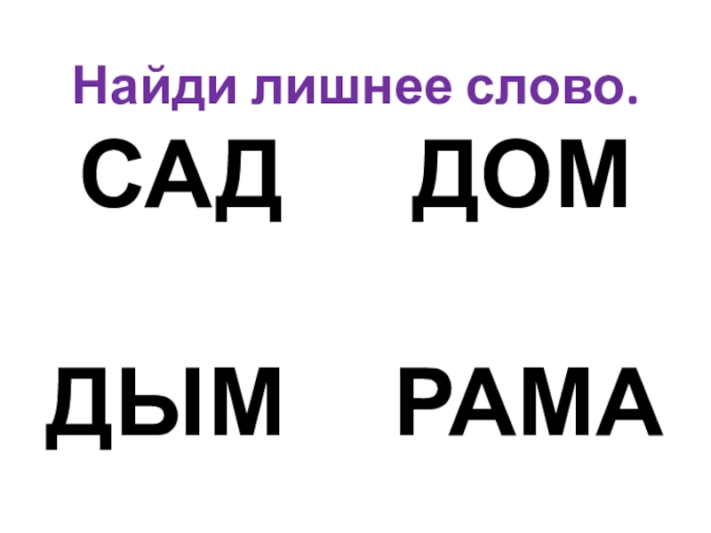 Найди лишнее слово. САД   ДОМ  ДЫМ   РАМА