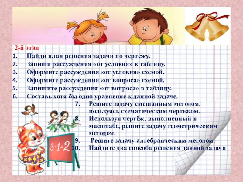 предоставить ученикам возможность выбора, организовать разнообразную работу в группах, быть готовыми к покомпонентному формированию общего умения решать задачи.