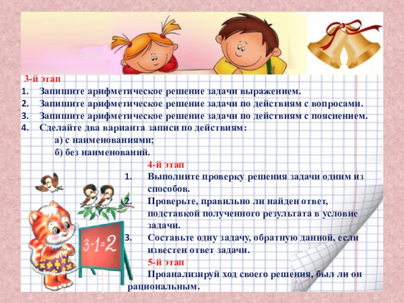 Слайд 4Для формирования умения решать задачи учащиеся должны научиться:
