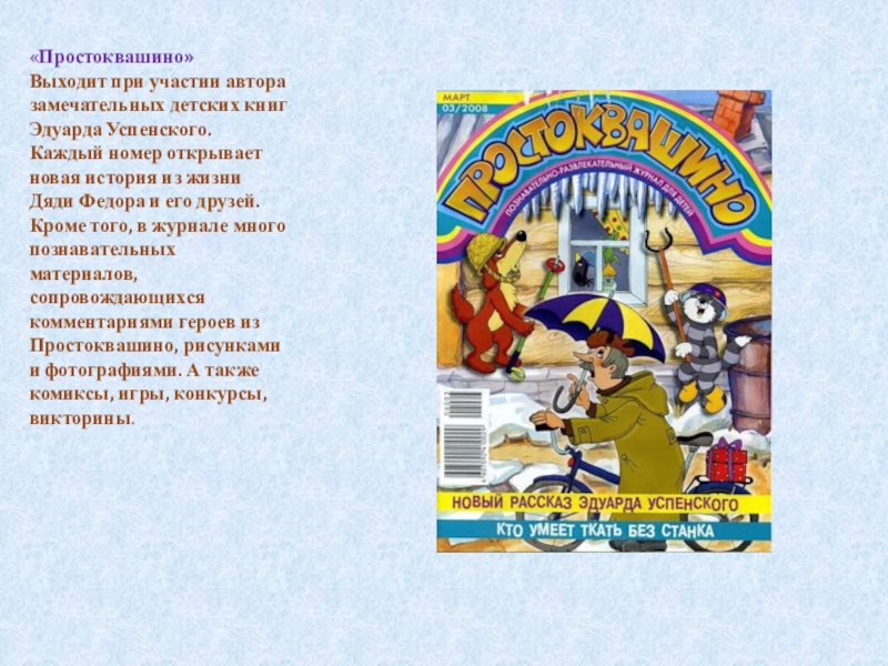 Выходит при участии автора замечательных детских книг Эдуарда Успенского. Каждый номер