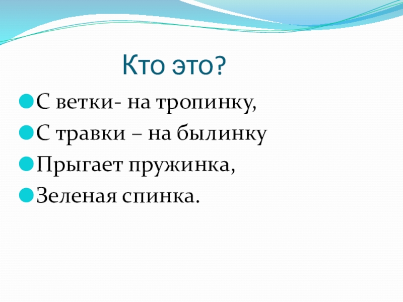 Кто это?С ветки- на тропинку,С травки – на былинкуПрыгает