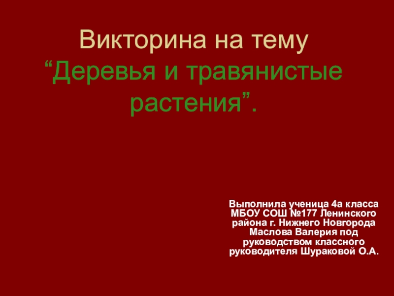 №177 Ленинского района г. Нижнего Новгорода Маслова Валерия под руководством классного руководителя Шураковой О.А.
