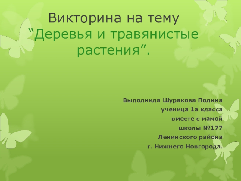Викторина на тему “Деревья и травянистые растения”.Выполнила Шуракова Полина ученица 1а класса вместе с мамойшколы №177 Ленинского