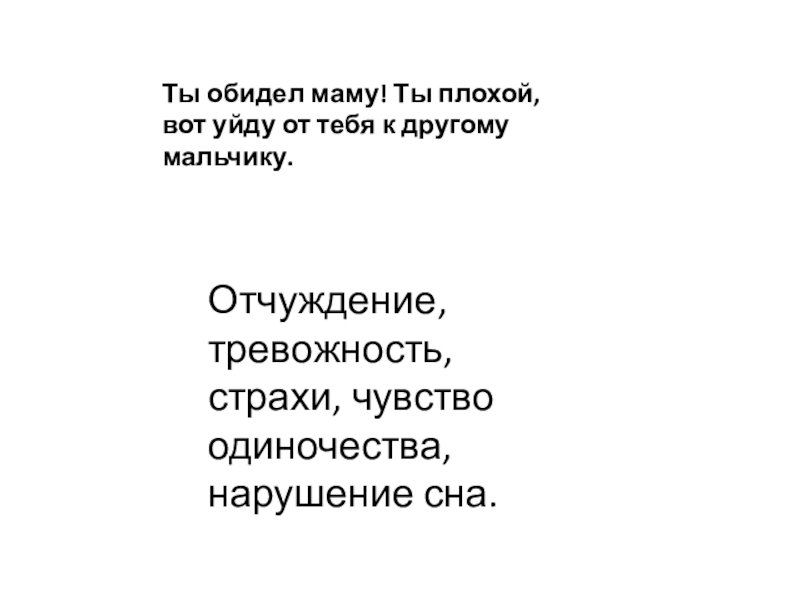 Отчуждение, тревожность, страхи, чувство одиночества, нарушение сна.