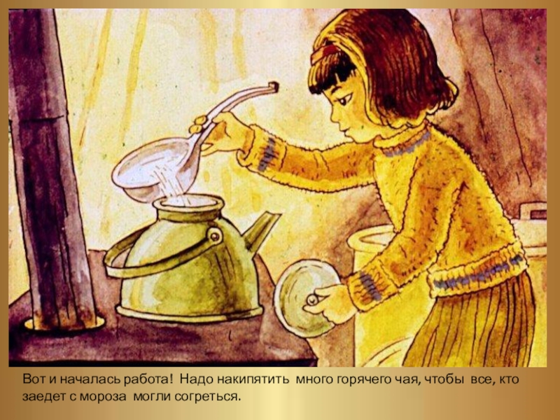 Слайд 9Вот и началась работа! Надо накипятить много горячего чая, чтобы все,