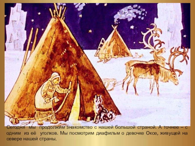 с одним из её уголков. Мы посмотрим диафильм о девочке Оксе, живущей на севере нашей страны.