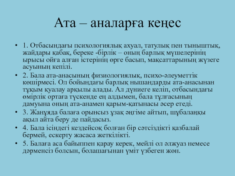1. Отбасындағы психологиялық ахуал, татулық пен тыныштық, жайдары