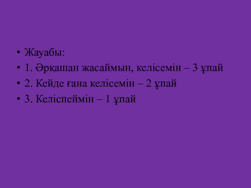 1. Әрқашан жасаймын, келісемін – 3 ұпай
