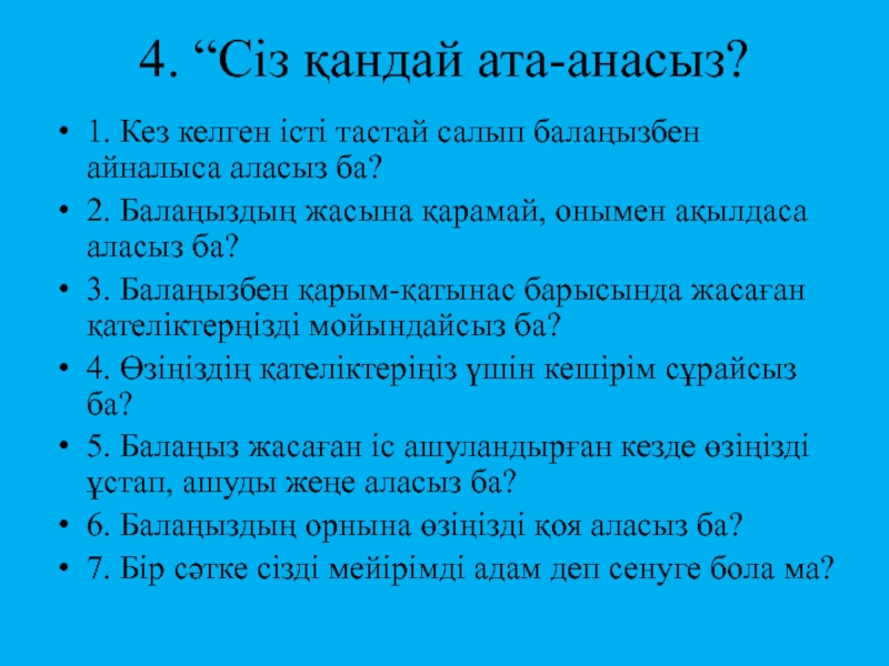 4. “Сіз қандай ата-анасыз?” тест тапсырмалары