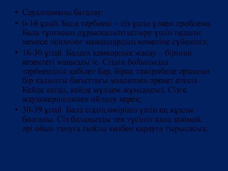 0-16 ұпай. Бала тәрбиесі – сіз үшін үлкен проблема. Бала