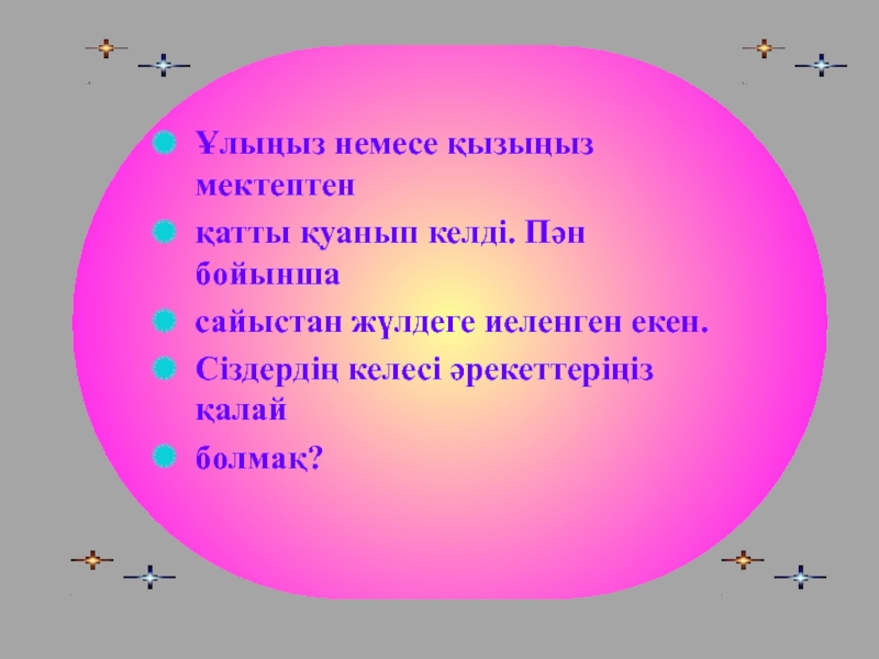 Слайд 13Ұлыңыз немесе қызыңыз мектептен
