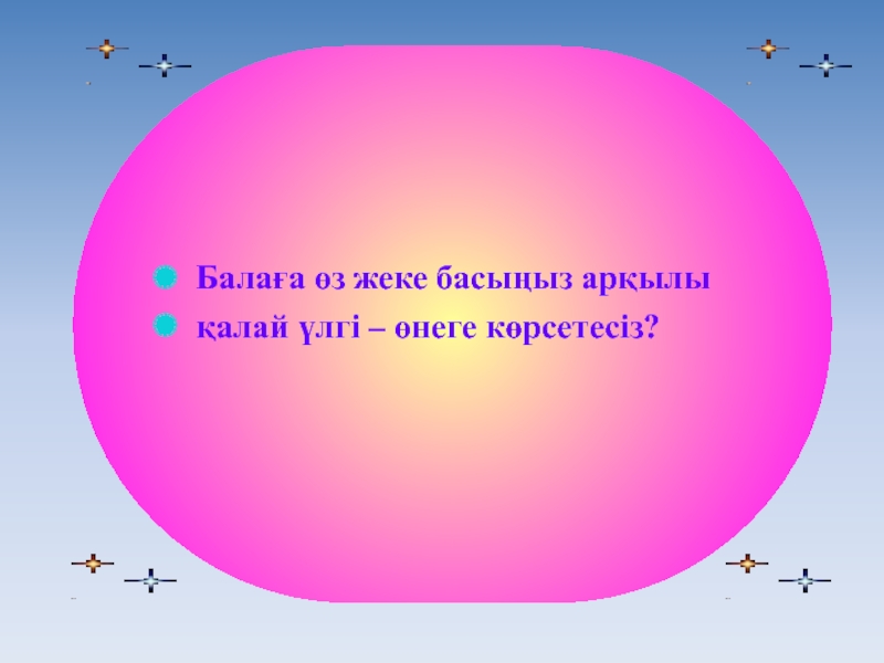 Слайд 14Балаға өз жеке басыңыз арқылы