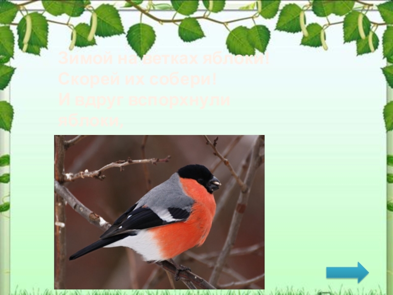 Зимой на ветках яблоки!Скорей их собери!И вдруг вспорхнули яблоки,Ведь это ...