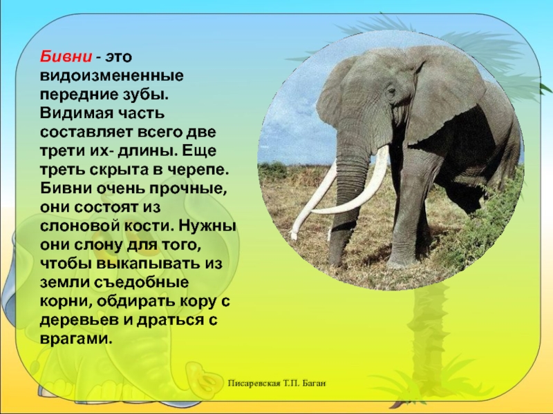 У индийских слонов ноги короче, а тело массивнее. У них выпуклая спина и маленькие уши. У африканских слонов большие уши, вогнутая спина. У индийских слонов бивни только у самцов, а у индийских — и у самцов, и у самок. У индийского слона бивни короче и легче, чем у африканского. Индийские слоны покрыты шерстью сильнее, чем африканские.