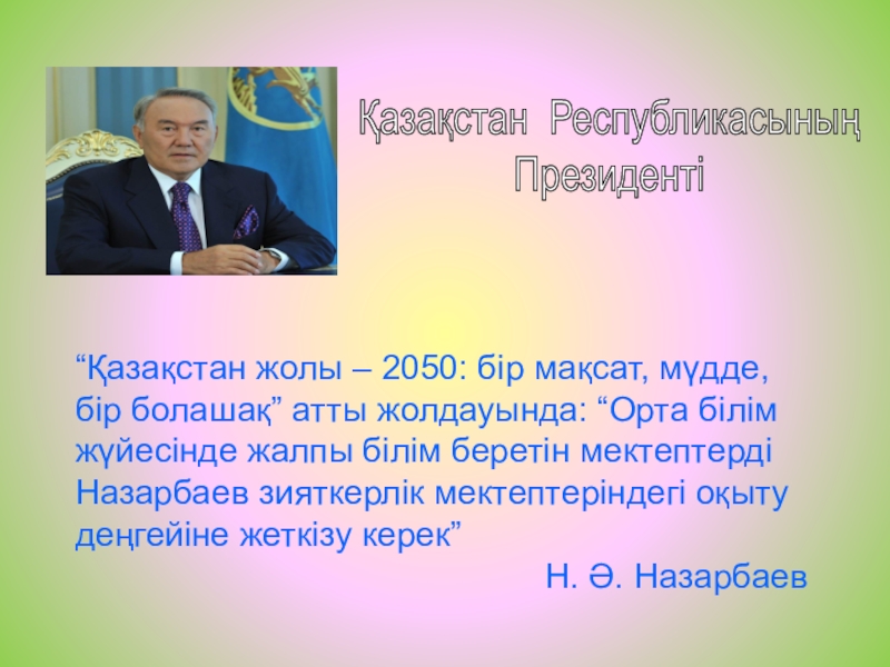 Слайд 2“Қазақстан жолы – 2050: бір мақсат, мүдде, бір болашақ” атты жолдауында: