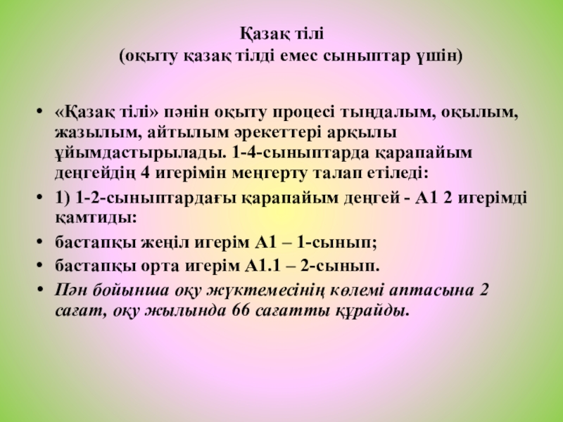 бастапқы орта игерім А1.1 – 2-сынып.