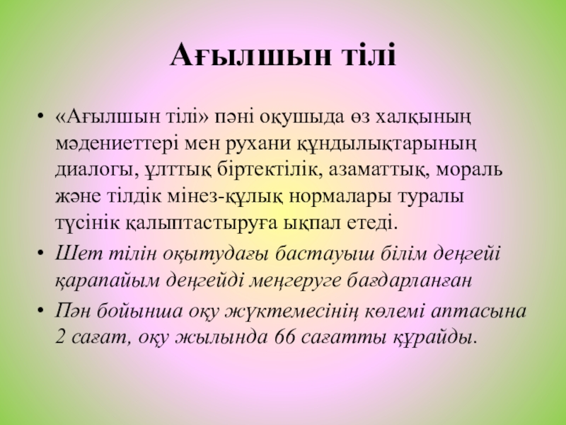 «Ағылшын тілі» пәні оқушыда өз халқының мәдениеттері мен рухани