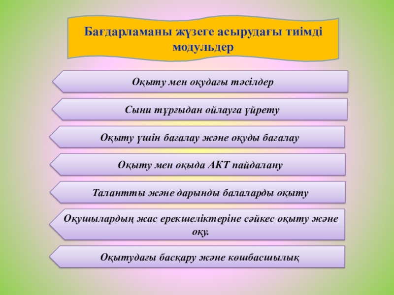 Слайд 10Бағдарламаны жүзеге асырудағы тиімді модульдер