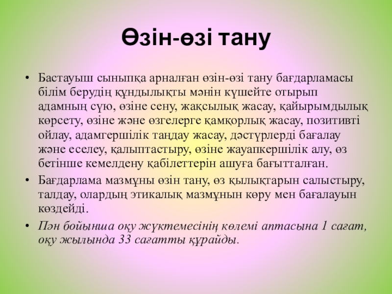 Бастауыш сыныпқа арналған өзін-өзі тану бағдарламасы білім берудің құндылықты