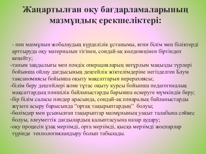 Слайд 9Жаңартылған оқу бағдарламаларының