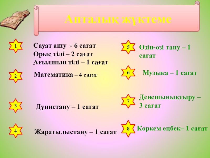 Сауат ашу - 6 сағат Орыс тілі – 2