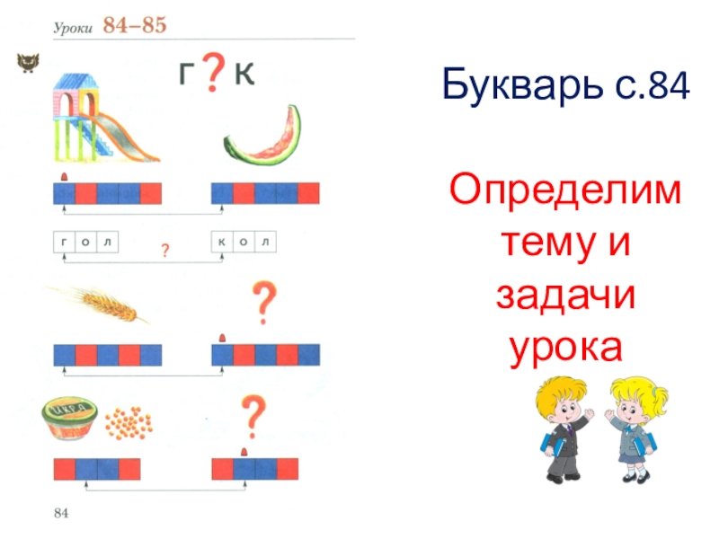Слайд 2Букварь с.84 Определим тему и задачи урока
