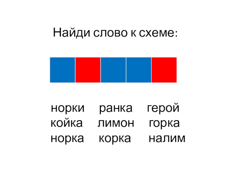 Слайд 6Найди слово к схеме: норки ранка герой койка
