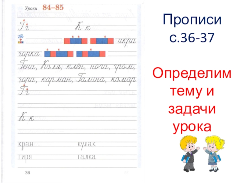 Слайд 13Прописи с.36-37 Определим тему и задачи урока