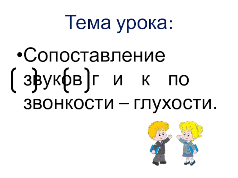 Тема урока:Сопоставление звуков г  и  к  по звонкости – глухости.
