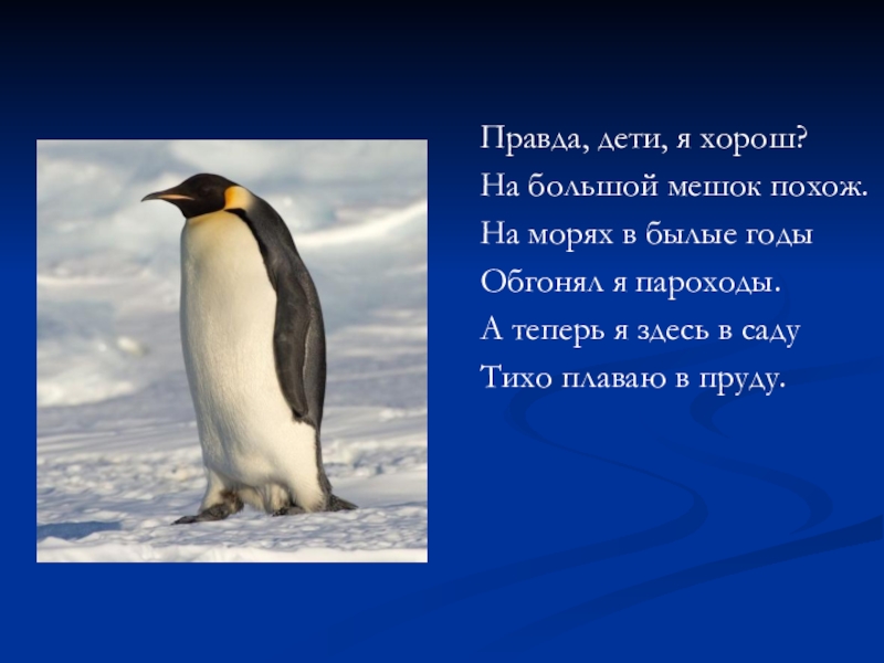 Правда, дети, я хорош?На большой мешок похож.На морях в былые годыОбгонял я пароходы.А теперь я здесь в