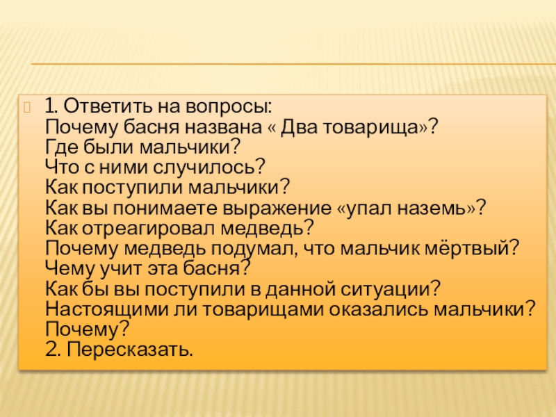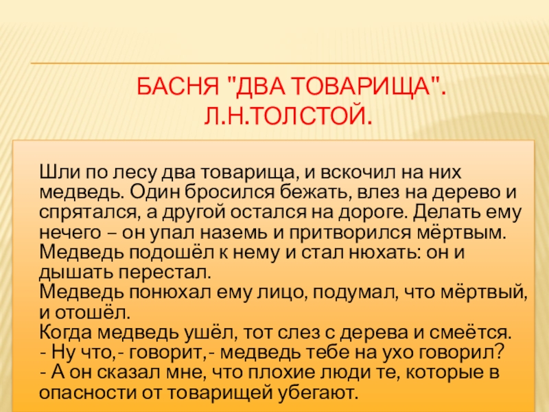 Слайд 21 БАСНЯ "ДВА ТОВАРИЩА".