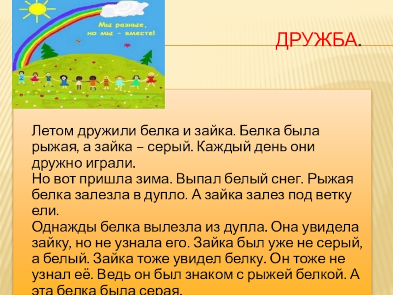 Летом дружили белка и зайка. Белка была рыжая, а зайка –