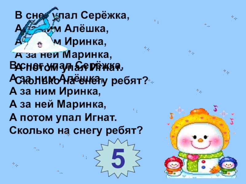 Сколько на снегу ребят?