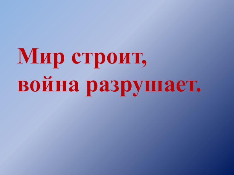 Мир строит, война разрушает.