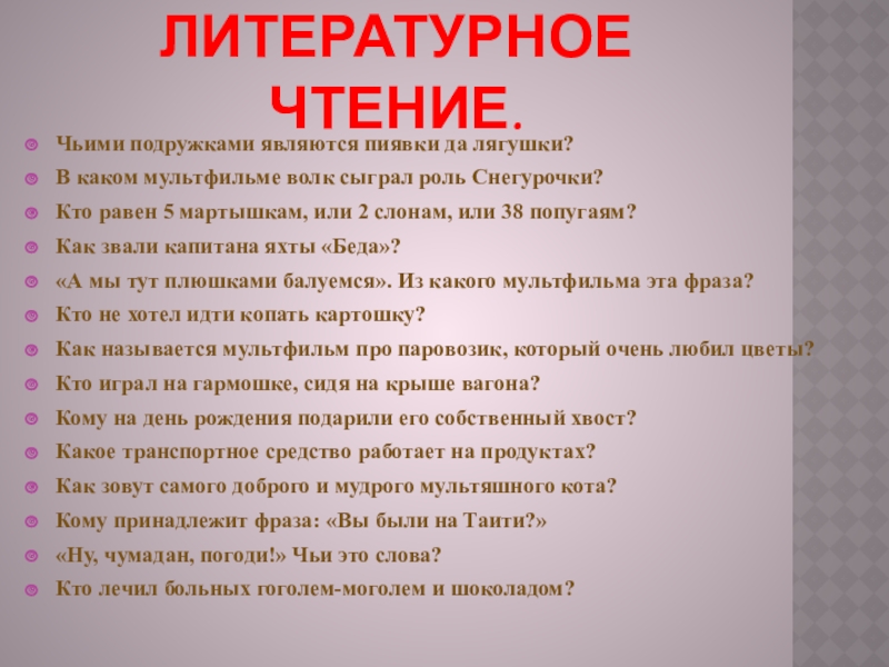 Это сайт презентаций, где можно хранить и обмениваться своими презентациями, докладами, проектами, шаблонами в формате PowerPoint с другими пользователями. Мы помогаем школьникам, студентам, учителям, преподавателям хранить и обмениваться учебными материалами.
