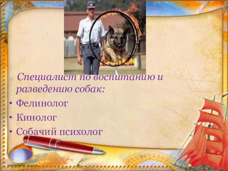 Слайд 11 Специалист по воспитанию и разведению собак: