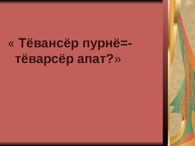 « Тёвансёр пурнё=-тёварсёр апат?»