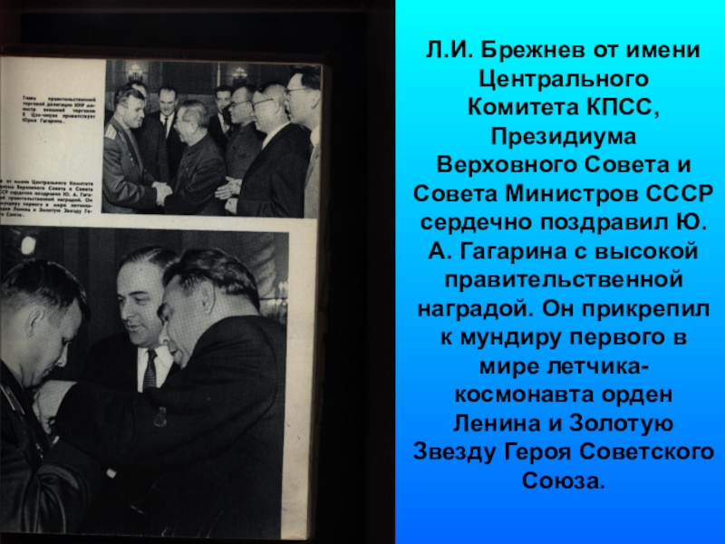 Совета Министров СССР сердечно поздравил Ю.А. Гагарина с высокой правительственной