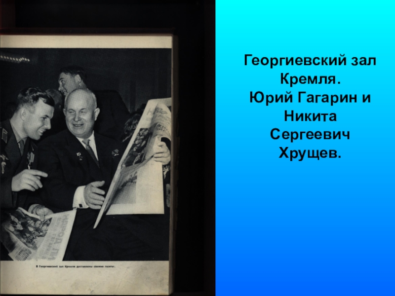 Георгиевский зал Кремля. Юрий Гагарин и Никита Сергеевич Хрущев.
