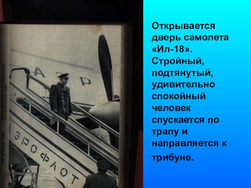Открывается дверь самолета «Ил-18». Стройный, подтянутый, удивительно спокойный человек спускается по трапу и направляется к трибуне.