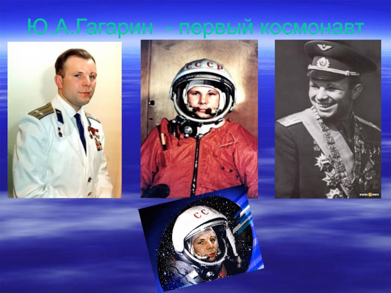 Слайд 10Ю.А.Гагарин - первый космонавт