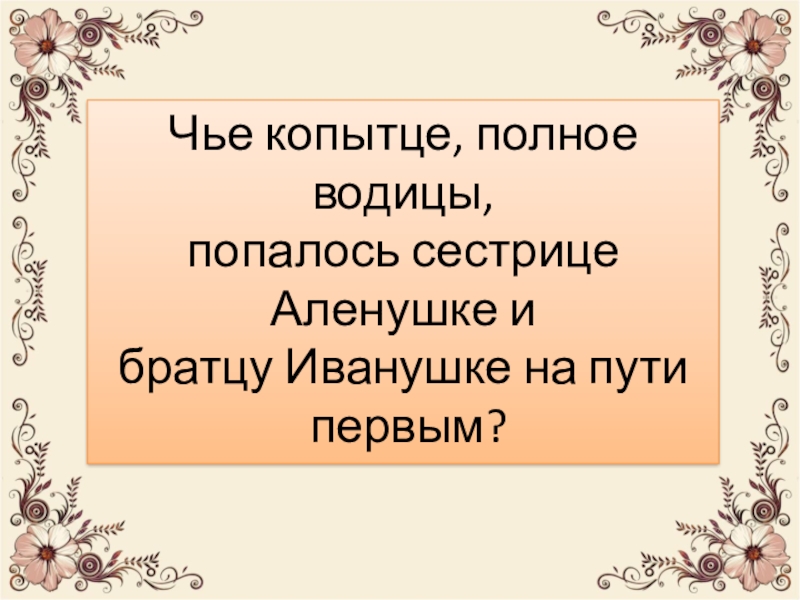 Чье копытце, полное водицы, попалось сестрице Аленушке и братцу Иванушке на пути первым?