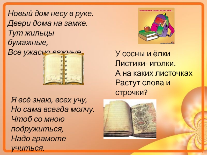 4. Кроме портфеля, что ещё возьмёте в школу?