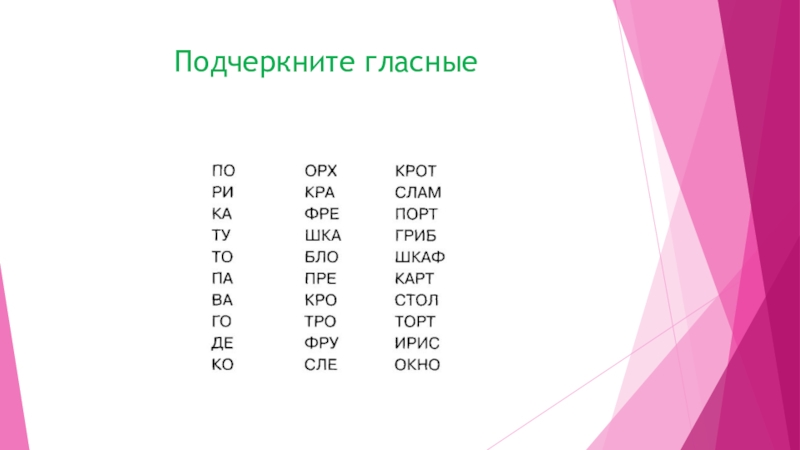 Слайд 15Подчеркните гласные