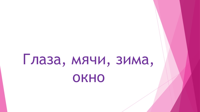 Слайд 17Глаза, мячи, зима, окно