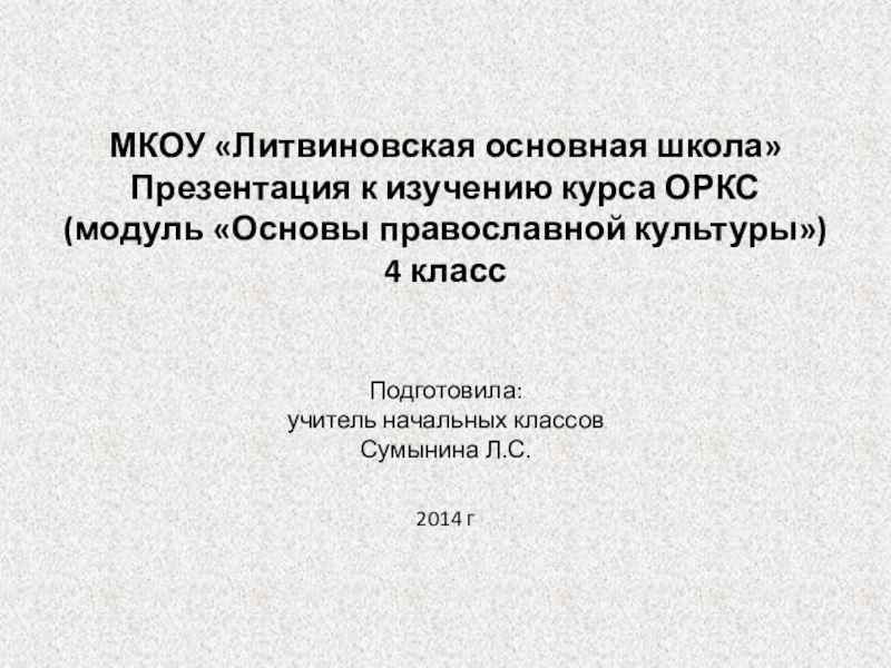 МКОУ «Литвиновская основная школа» Презентация к изучению курса ОРКС (модуль «Основы православной культуры») 4 класс Подготовила: учитель начальных классов Сумынина Л.С. 2014 г