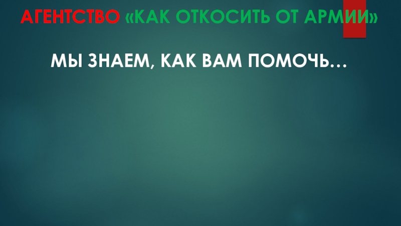 Слайд 4АГЕНТСТВО «КАК ОТКОСИТЬ ОТ АРМИИ»
