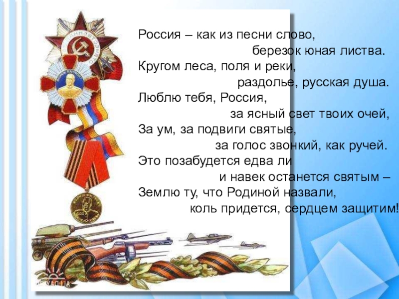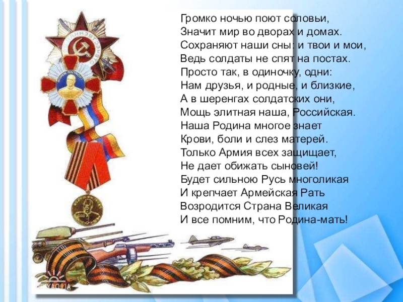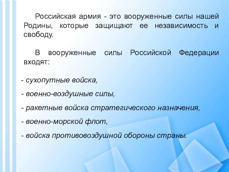 Российская армия - это вооруженные силы нашей Родины, которые защищают ее