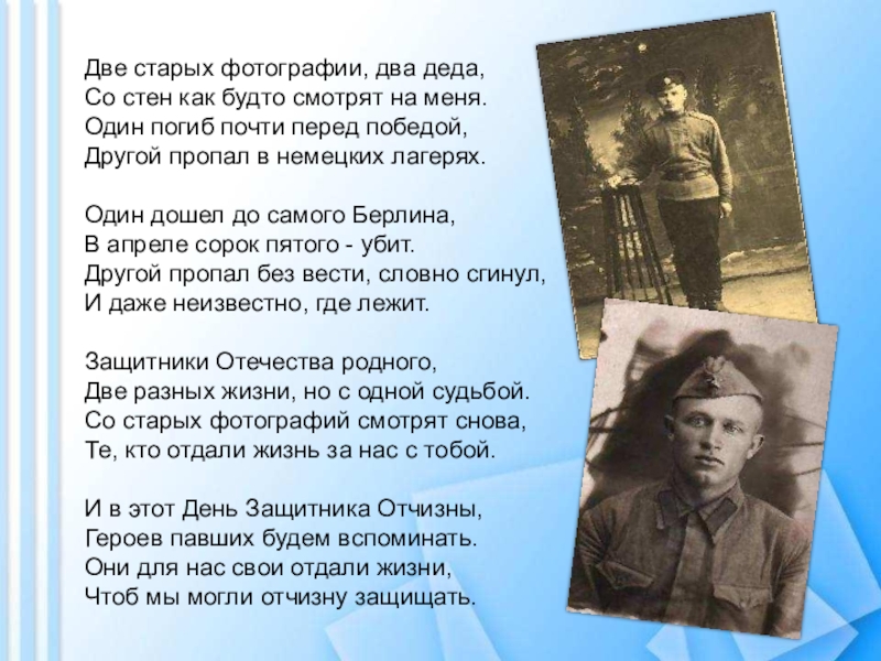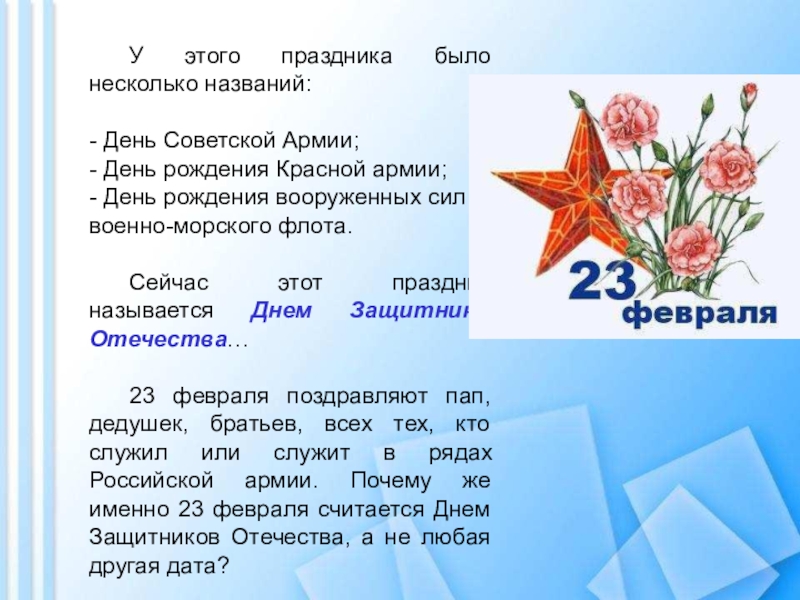 Сейчас этот праздник называется Днем Защитника Отечества…